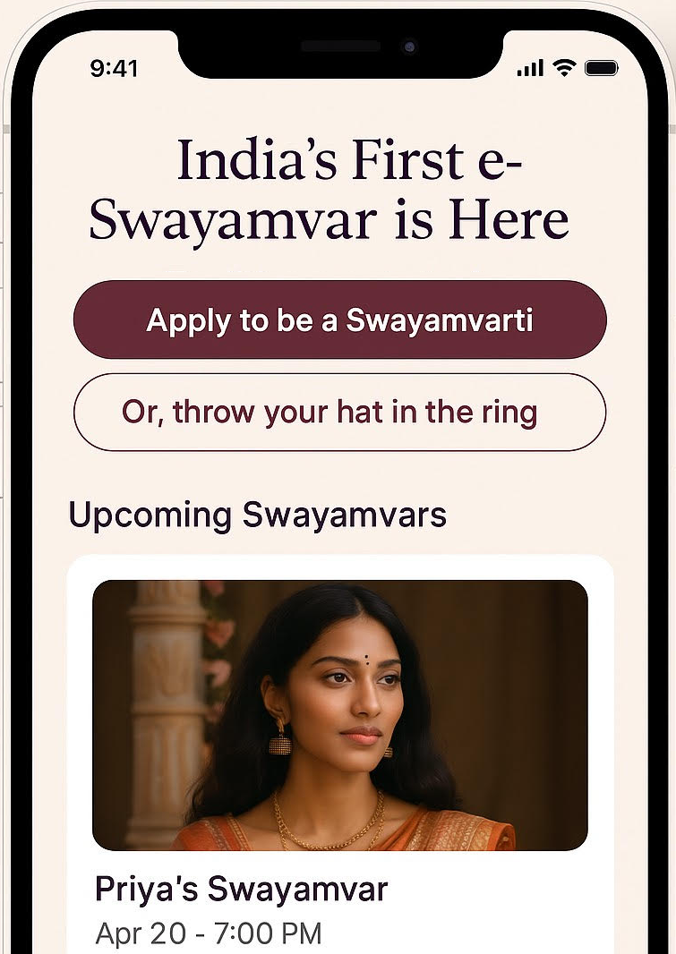 India's first matchmaking app rooted in the values of Sanatan Dharma. Introducing e-Swayamvar, where tradition meets technology.